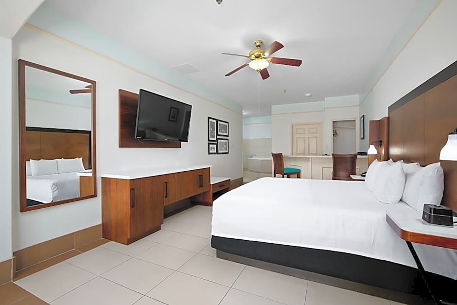 Featuring free toiletries, this quadruple room includes a private bathroom with a shower. The quadruple room features a coffee machine, a wardrobe, a safe deposit box, a TV, as well as pool views. The unit has 3 beds.